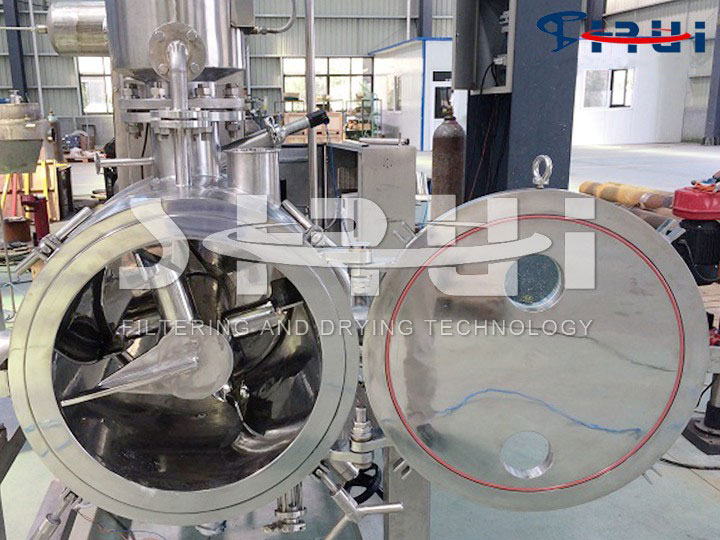 (3) 熱效率高:所有與物料接觸的表面都是加熱的,如罐體、后封頭、前封頭、攪拌和除塵器,均勻伴熱,換熱面積大,這可提供高效的換熱效率;